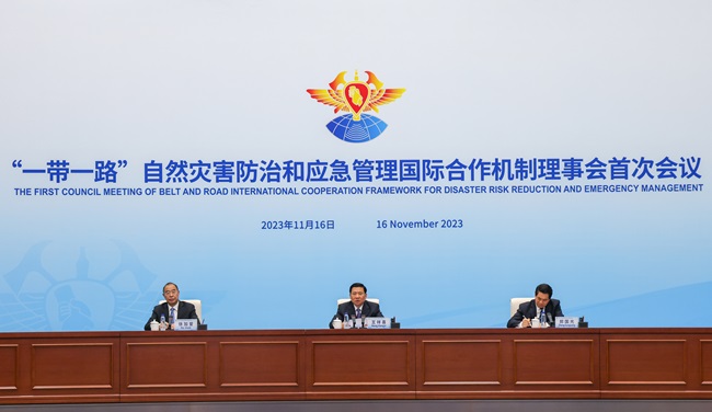 11月16日,2023“一带一路”自然灾害防治和应急管理国际合作部长论坛以线上线下相结合的方式在北京召开,论坛主题是“应急管理:安全第一、预防为主”。论坛期间举行了“一带一路”自然灾害防治和应急管理国际合作机制理事会首次会议,正式宣布合作机制成立,31个应急管理部门和国际组织加入,应急管理部部长王祥喜当选首任理事会主席,应急管理部副部长徐加爱当选秘书长,国家减灾委员会原秘书长郑国光当选咨询委员会主席。22位合作机制理事会成员和合作伙伴代表先后发言。